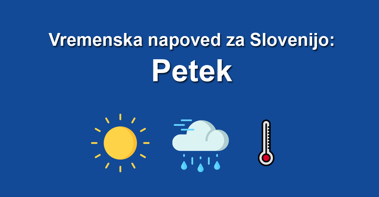Sončen in vroč dan bo po celotni Sloveniji, vpliv vremena na počutje in razpoloženje bo ugoden, le popoldne bo precejšnja toplotna obremenitev. Izkoristite lep petek, kajti v začetku vikenda že prihaja poslabšanje vremena. Sobota bo tako deževna, prihajajo plohe in nevihte, ki bodo zajele vso Slovenijo.